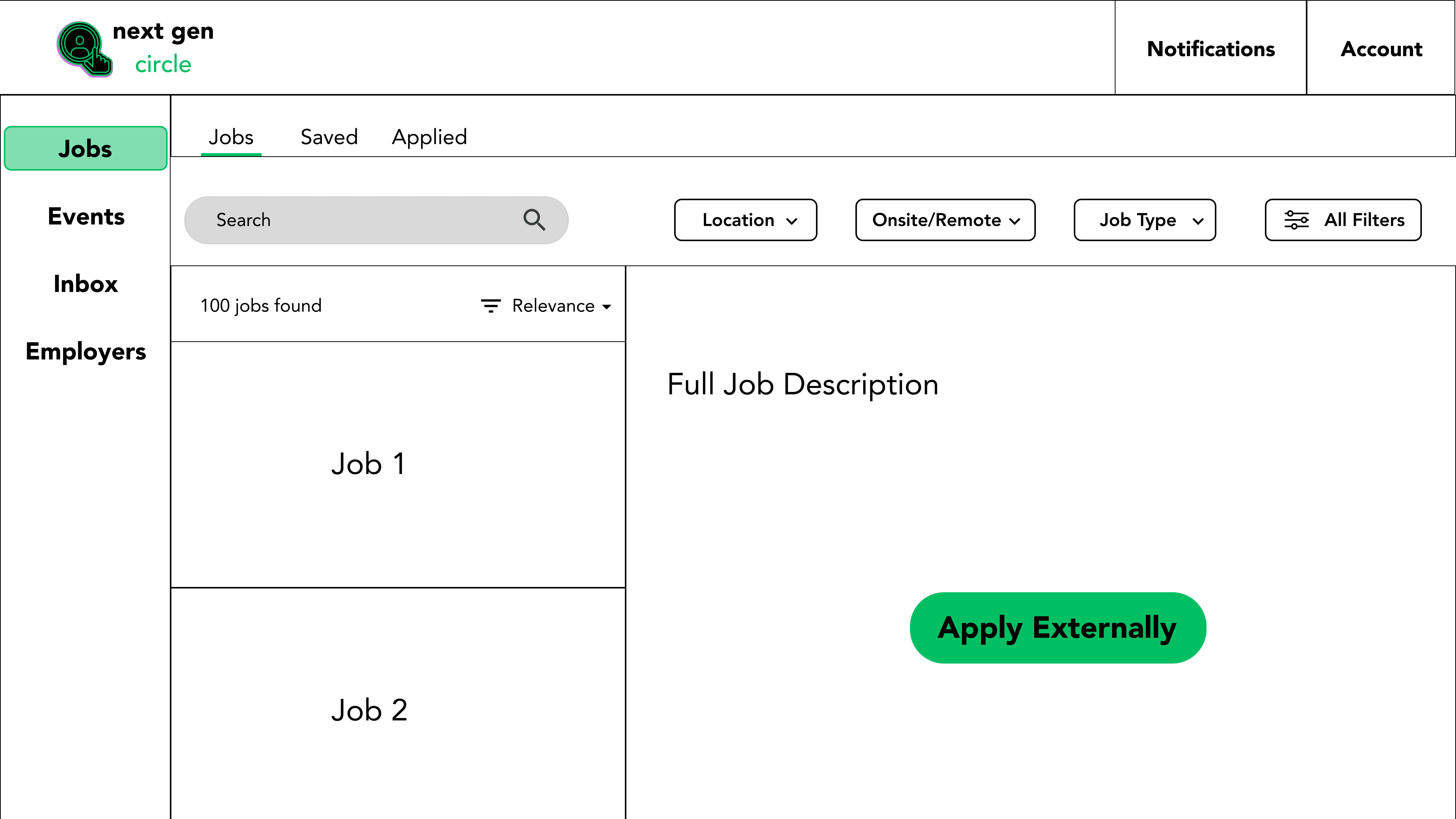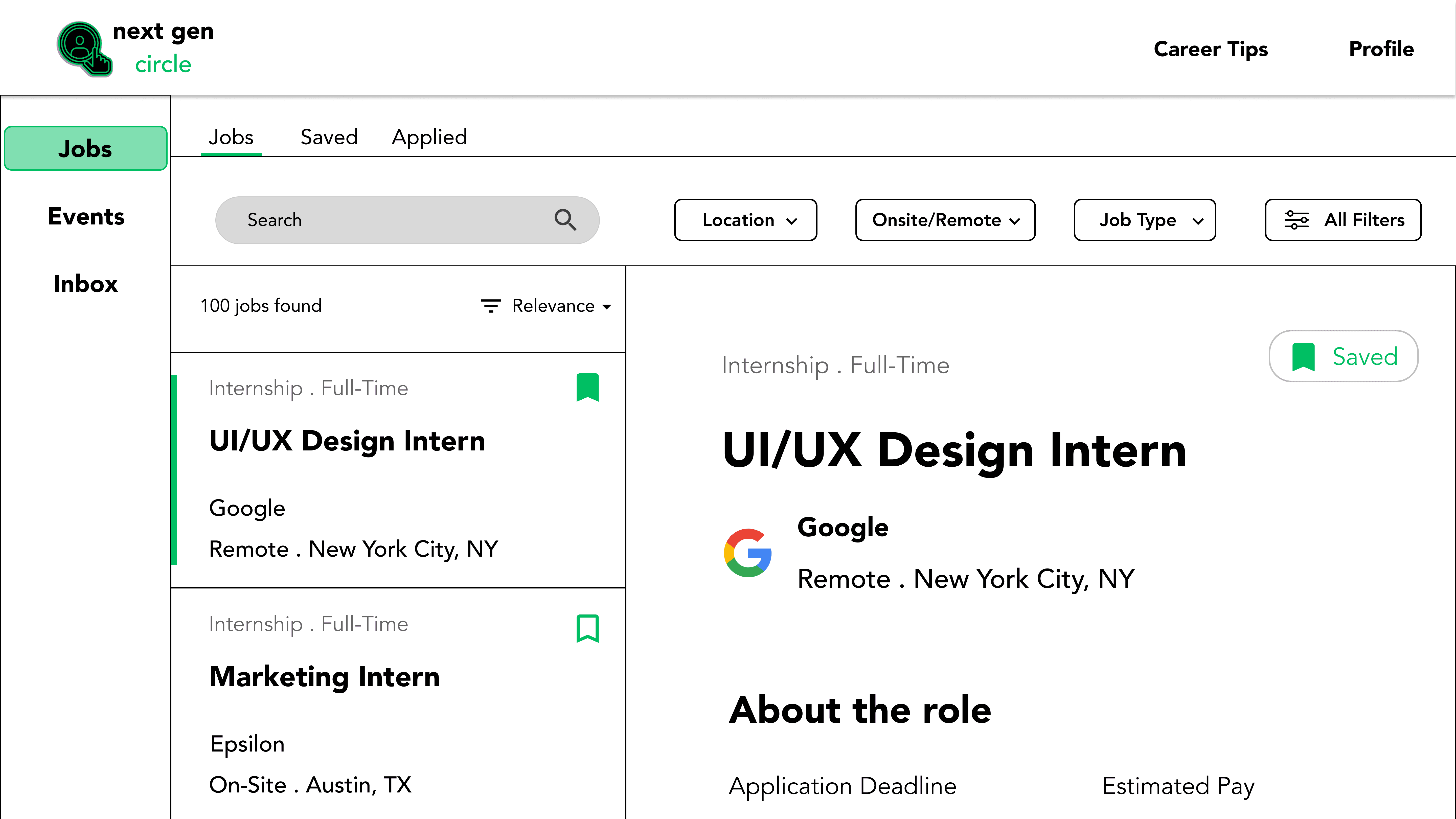 Dedicated space where companies can showcase opportunities, post events, and engage with talent. → Solves the disconnect between young professionals and potential employers.